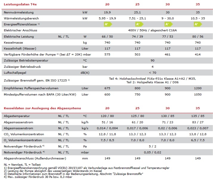 Hackgutkessel T4e Hackgutkessel zur automatischen Verfeuerung von: Brennstoff gem. EN ISO 17225 - Teil 4: Holzhackschnitzel P16s-P31s Klasse A1 + A2 / M35