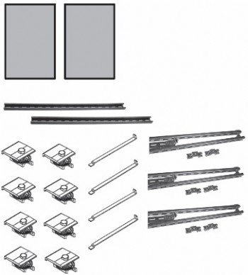 Erweiterungsset Flachdach für 1 Kollektor 1 x Montageschiene 1215 mm / 1 Paar 1 x Kollektorklemme Set 4 Stück 2 x Abrutschsicherung 1 x Verbinder Montageschiene / 1 Paar 1 x Flachdachaufständerung lang mit Querverbinder