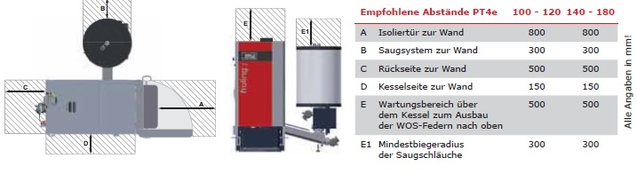 Pelletskessel PT4e 100 bis PT4e 180: inkl. AGR, eingebauter Pumpengruppe ME, Strangregulierventil und Pelletsentstauber PST