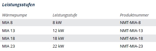NMT Luft-/Wasser-Wärmepumpe MIA