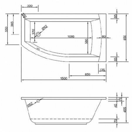 Badewanne Modell Flo 150/85 rechts mit und ohne Schürze