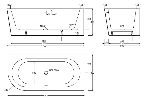 Länge: Breite: Tiefe: | 170 80 45/60 | cm cm cm |