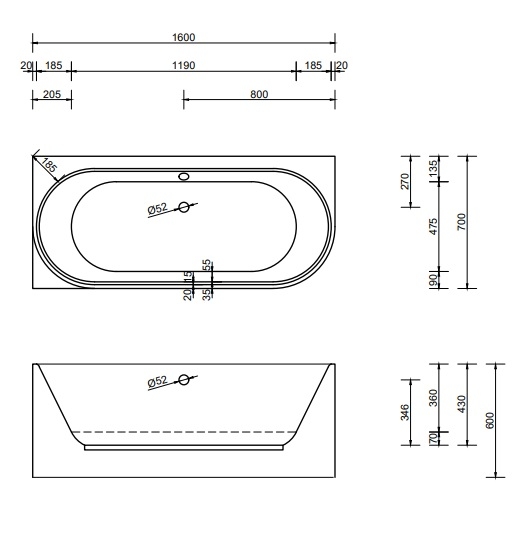 Badewanne Modell Salm V links 160/70 mit Schürze